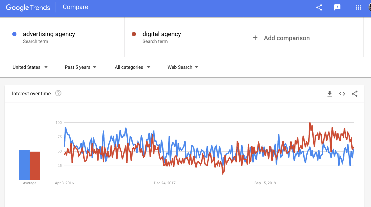Ah, Google Trends. Here is an interesting trends graph. What do you call your agency?