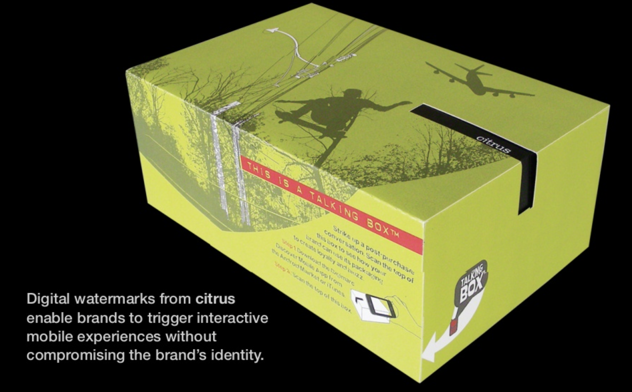 One day I brought home a Nike running shoe box and thought that Nike should use the Digimarc technology to activate the Swoosh from being a static graphic to being a very active mobile event launcher. The program was simple and global. Over time, Nike would alert its buyers that there was information and promotional value in aiming their phone at the Swoosh logo. I’m talking millions of boxes that could be brought to life, to tell stories, to sell more stuff.