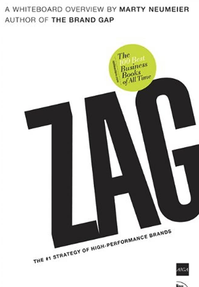 “ZAG: The #1 Strategy of High-Performance Brands” by Marty Neumeier. From Marty’s Amazon page: ‘When everybody zigs, zag,’ says Marty Neumeier in this fresh view of brand strategy. ZAG follows the ultra-clear ‘whiteboard overview’ style of the author’s first book, The Brand Gap, but drills deeper into the question of how brands can harness the power of differentiation.